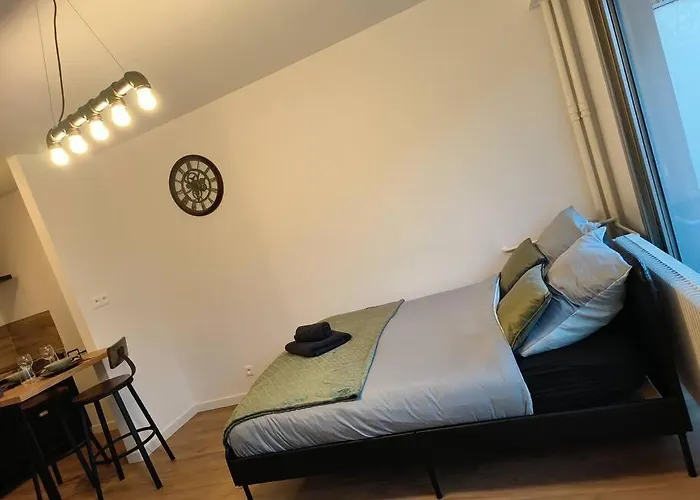 1-slaapkamer Charmant Studio - Gare Colmar ligt binnen 13 minuten wandelafstand van De Dominicanenkerk en beschikt over gratis privéparkeerplaatsen voor degenen die met de auto reizen. Bazel-Mulhouse-Freiburg ligt op 43 minuten rijden van het 27 m^2 grote appartement.